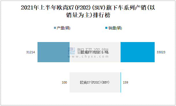 2021年上半年歐尚X7(F202)(SUV)產銷量分別為31314輛和33182輛 產銷率為105.97%
