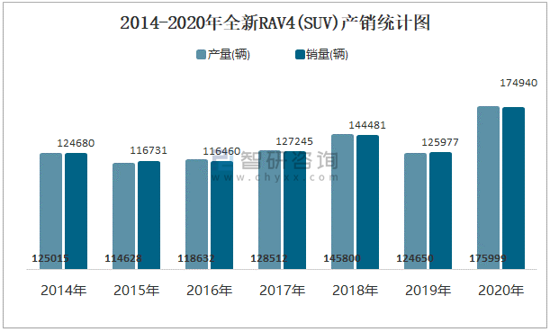 2014-2020年全新RAV4(SUV)產銷統計圖
