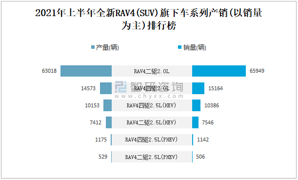 2021年上半年全新RAV4(SUV)旗下車系列產銷(以銷量為主)排行榜