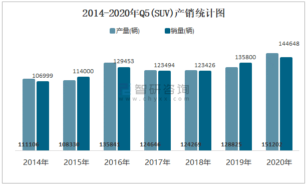 2014-2020年Q5(SUV)產(chǎn)銷統(tǒng)計圖