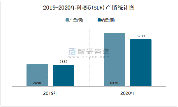 2021年上半年科賽5(SUV)產銷量分別為2031輛和2858輛 產銷率為140.72%