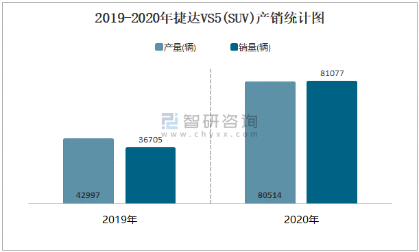 2019-2020年捷達VS5(SUV)產銷統計圖