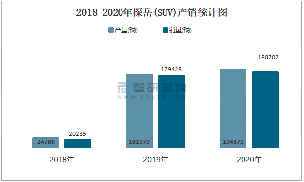 2018-2020年探岳(SUV)產(chǎn)銷統(tǒng)計(jì)圖