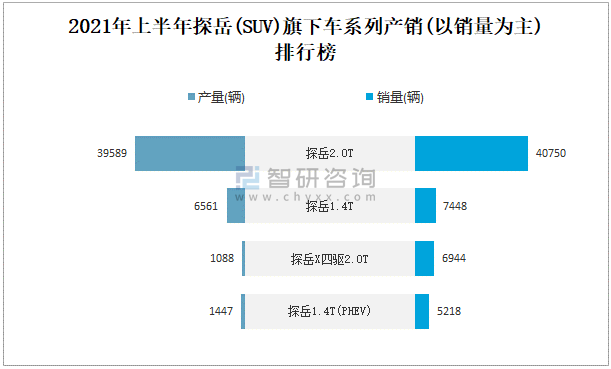 2021年上半年探岳(SUV)旗下車系列產(chǎn)銷(以銷量為主)排行榜