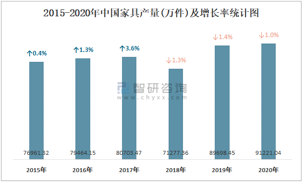根據國家統計局數據顯示:2021年7月中國家具產量為9247萬件,同比增長7.11%;2021年1-7月中國家具累計產量為61322.7萬件,同比增長25.67%;2015-2020年中國家具產量2018年跌至最低,此后逐年遞增。