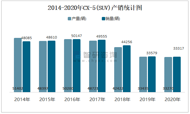 2014-2020年CX-5(SUV)產銷統計圖
