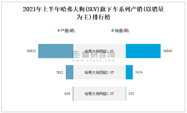 2021年上半年哈弗大狗(SUV)旗下車系列產銷(以銷量為主)排行榜