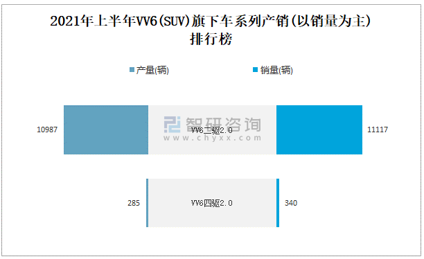 2021年上半年VV6(SUV)旗下車系列產(chǎn)銷(以銷量為主)排行榜