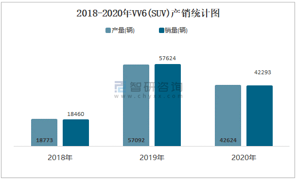 2018-2020年VV6(SUV)產(chǎn)銷統(tǒng)計(jì)圖