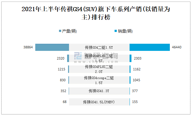 2021年上半年傳祺GS4(SUV)旗下車系列產銷(以銷量為主)排行榜