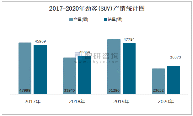 2017-2020年勁客(SUV)產(chǎn)銷統(tǒng)計(jì)圖