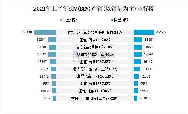 2021年上半年SUV(BEV)產銷(以銷量為主)排行榜