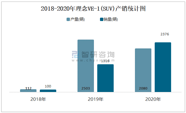2018-2020年理念VE-1(SUV)產銷統計圖