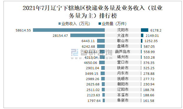 2021年7月遼寧下轄地區(qū)快遞業(yè)務(wù)量及業(yè)務(wù)收入(以業(yè)務(wù)量為主)排行榜