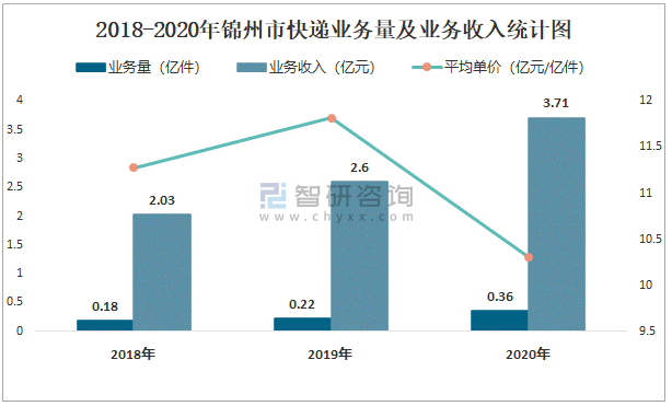 2018-2020年錦州市快遞業(yè)務(wù)量及業(yè)務(wù)收入統(tǒng)計(jì)圖