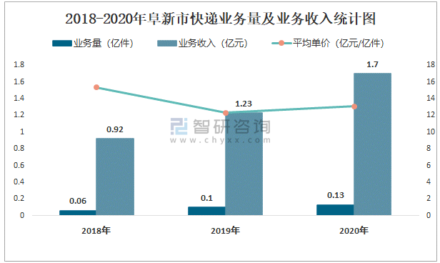 2018-2020年阜新市快遞業(yè)務(wù)量及業(yè)務(wù)收入統(tǒng)計(jì)圖