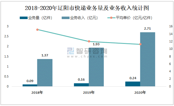 根據(jù)各省市郵政局數(shù)據(jù)可知:2021年7月遼陽市快遞業(yè)務(wù)量為188.78萬件,業(yè)務(wù)收入為2511.02萬元;2021年1-7月遼陽市快遞累計業(yè)務(wù)量為1693.01萬件,同比增長66.55%,累計業(yè)務(wù)收入為18661.98萬元,同比增長46.11%;2018-2020年遼陽市快遞業(yè)務(wù)量與業(yè)務(wù)收入均逐年遞增,平均單價逐年遞減。
