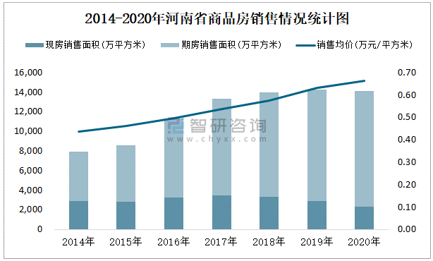 2014-2020年河南省商品房銷售情況統計圖