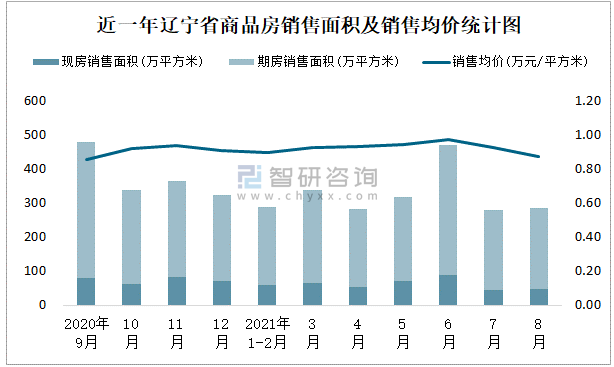 2021年8月遼寧省銷售商品房285.73萬平方米 銷售均價約為0.87萬元/平方米