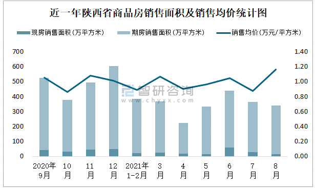 2021年8月陜西省銷售商品房338.84萬平方米 銷售均價約為1.16萬元/平方米