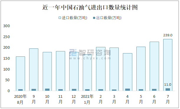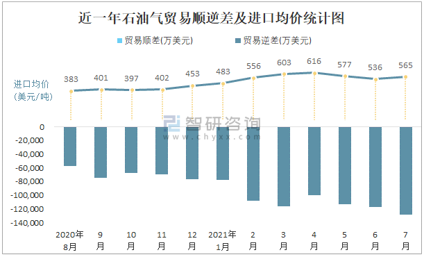 根據(jù)中國石油和化學(xué)工業(yè)聯(lián)合會數(shù)據(jù)顯示:2021年7月中國石油氣進(jìn)口數(shù)量為239萬噸,出口數(shù)量為11萬噸;進(jìn)口金額為135104萬美元,出口金額為6514萬美元;近一年中國石油氣出口總金額小于進(jìn)口總金額,貿(mào)易逆差為主,7月進(jìn)口均價565.3美元/噸。