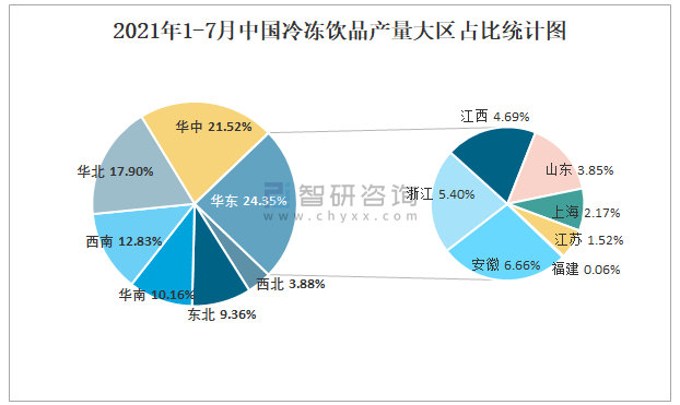 2021年1-7月中國冷凍飲品產量大區占比統計圖