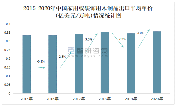 2015-2020年中國家用或裝飾用木制品出口平均單價(jià)(億美元/萬噸)情況統(tǒng)計(jì)圖