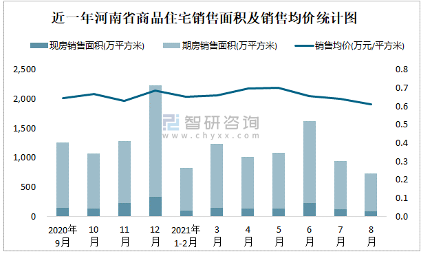 2021年8月河南省銷售商品住宅737.28萬平方米 銷售均價約為0.61萬元/平方米