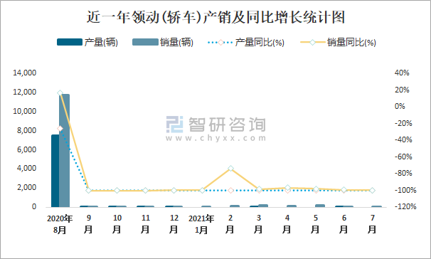 根據中國汽車工業協會數據可知:2021年7月領動(轎車)產量為0輛,同比下降100%,銷量為2輛,同比下降99.8%,當月產銷率為0;2021年1-7月領動(轎車)累計產量為5輛,同比下降100%,累計銷量為686輛,同比下降98.5%,累計產銷率為13720%;2016-2020年領動(轎車)產銷量均在2018年達到最高值,此后逐年遞減,且近5年總銷量大于總產量,清倉庫存2069輛。