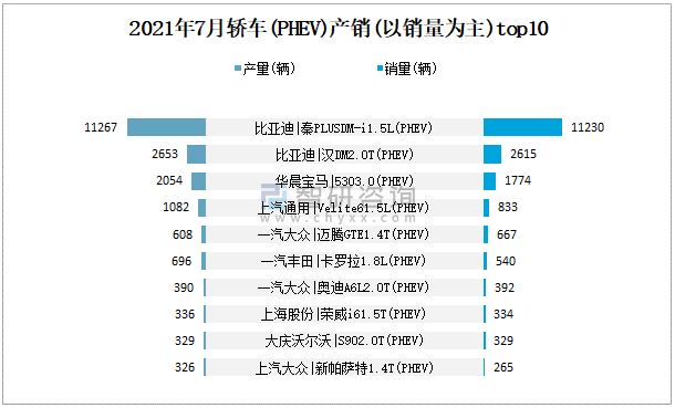 2021年7月轎車(PHEV)產銷(以銷量為主)top10