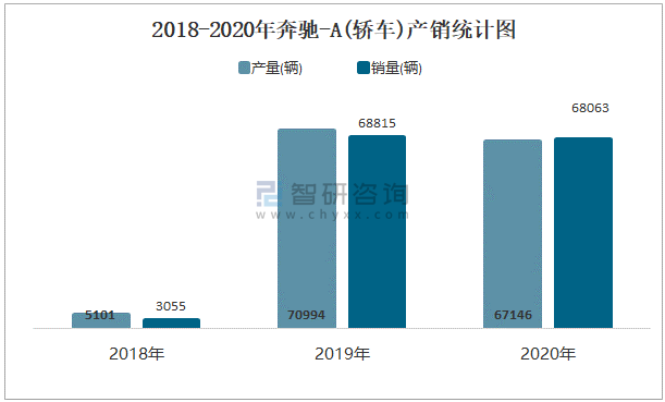 根據中國汽車工業協會數據可知:2021年7月奔馳-A(轎車)產量為5802輛,同比下降17.4%,銷量為9425輛,同比增長42.4%,當月產銷率為162.44%;2021年1-7月奔馳-A(轎車)累計產量為46657輛,同比增長25.4%,累計銷量為47669輛,同比增長26.7%,累計產銷率為102.17%;2018-2020年奔馳-A(轎車)產銷量均在2019年達到最高值,次年出現小幅度下滑,且近3年總產量大于總銷量,積壓了庫存3308輛。