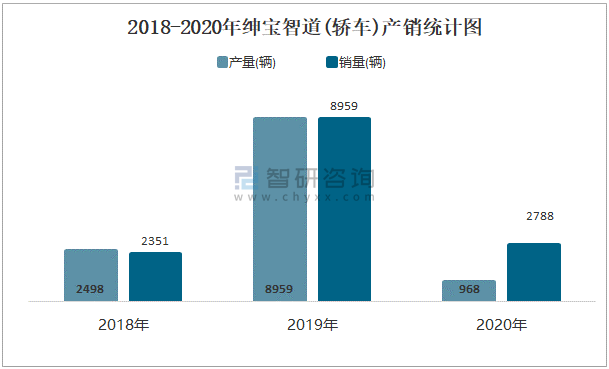2018-2020年紳寶智道(轎車)產銷統計圖