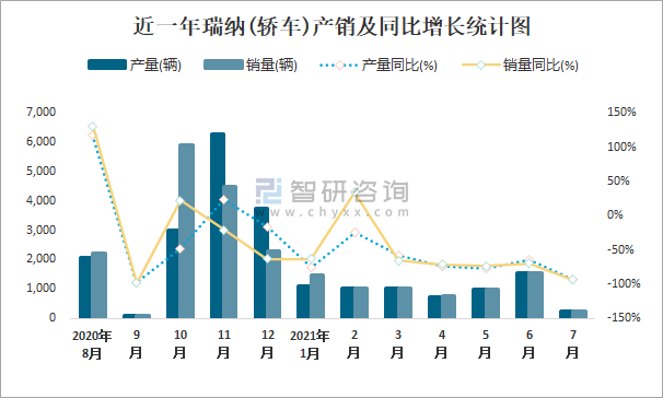 2021年7月瑞納(轎車)產銷量分別為240輛和240輛 當月產銷率為100%