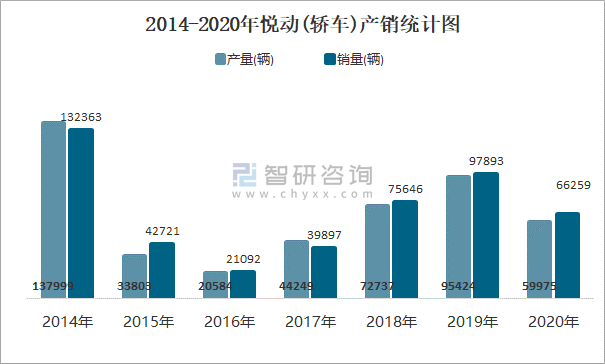 2014-2020年悅動(轎車)產(chǎn)銷統(tǒng)計圖