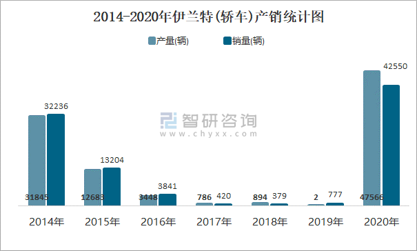 2014-2020年伊蘭特(轎車)產(chǎn)銷統(tǒng)計圖