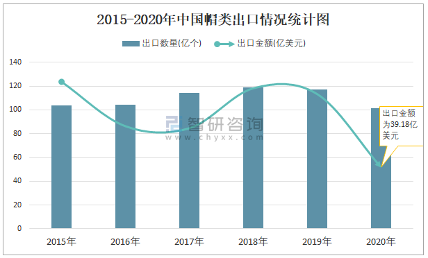 根據中國海關數據顯示:2021年7月中國帽類出口數量為8.2億個,同比下降6.3%,出口金額為4.97億美元,同比增長27.4%;2021年1-7月中國帽類,出口數量為75.29億個,出口金額為27.81億美元。