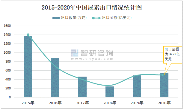 2015-2020年中國尿素出口情況統(tǒng)計圖