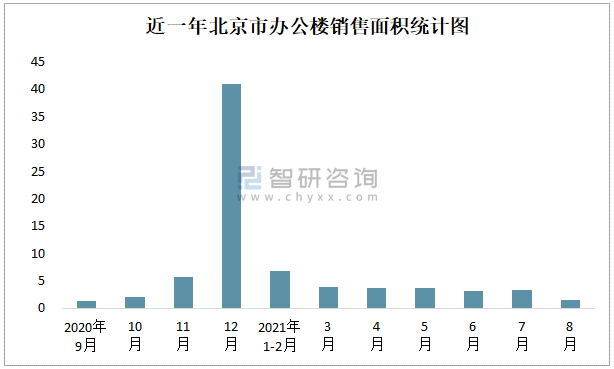 根據國家統計局數據可知:2021年8月北京市辦公樓銷售面積為1.51萬平方米;2021年1-8月北京市辦公樓累計銷售面積為25.85萬平方米。
