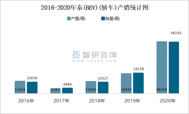 2016-2020年秦(BEV)(轎車)產銷統計圖