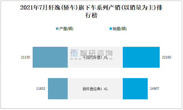 2021年7月軒逸(轎車)旗下車系列產(chǎn)銷(以銷量為主)排行榜