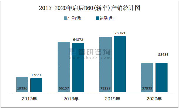 2017-2020年啟辰D60(轎車)產銷統計圖