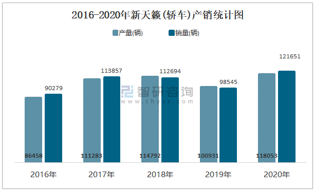 2016-2020年新天籟(轎車)產(chǎn)銷統(tǒng)計(jì)圖