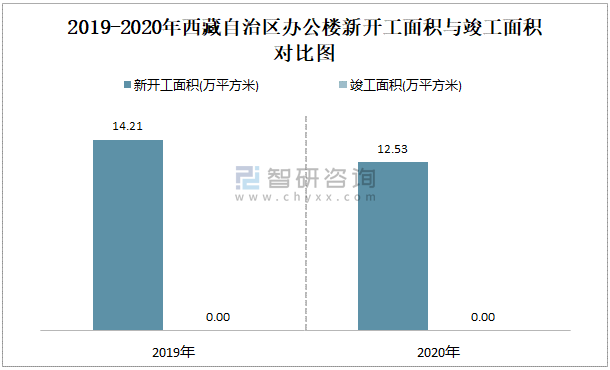 2019-2020年西藏自治區辦公樓新開工面積與竣工面積對比圖