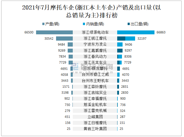 2021年7月摩托車企(浙江本土車企)產銷及出口量(以總銷量為主)排行榜