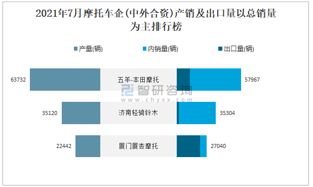 2021年7月摩托車企(中外合資)產銷及出口量(以總銷量為主)排行榜