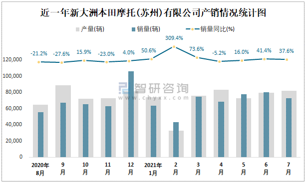 近一年新大洲本田摩托(蘇州)有限公司產銷情況統計圖