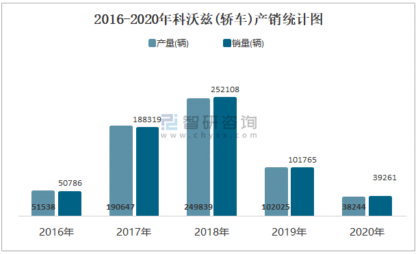 根據中國汽車工業協會數據可知:2021年7月科沃茲(轎車)產量為1058輛,同比下降71.4%,銷量為1095輛,同比下降68.3%,當月產銷率為103.5%;2021年1-7月科沃茲(轎車)累計產量為10988輛,同比下降38.6%,累計銷量為10979輛,同比下降40.7%,累計產銷率為99.92%;2016-2020年科沃茲(轎車)產銷量均在2018年達到最高值,此后逐年遞減,且近5年總產量大于總銷量,積壓了庫存54輛。