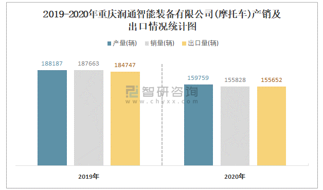 2019-2020年重慶潤通智能裝備有限公司產銷及出口情況統計圖