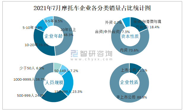 2021年7月摩托車企業各分類銷量占比統計圖