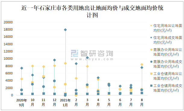2021年1-8月石家莊市各類用地土地成交情況統計表
